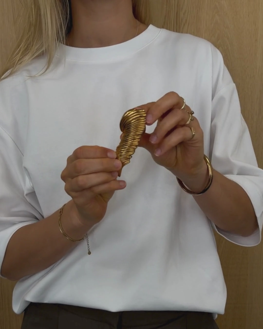Crafted from premium stainless steel and shaped in our own custom molds, our pieces are built to last. Finished with advanced PVD plating, a high-tech vacuum coating used in luxury watches and designer hardware, they’re exceptionally resistant to scratches, fading, and everyday wear. Strong, sleek, and made to stay beautiful. Always.